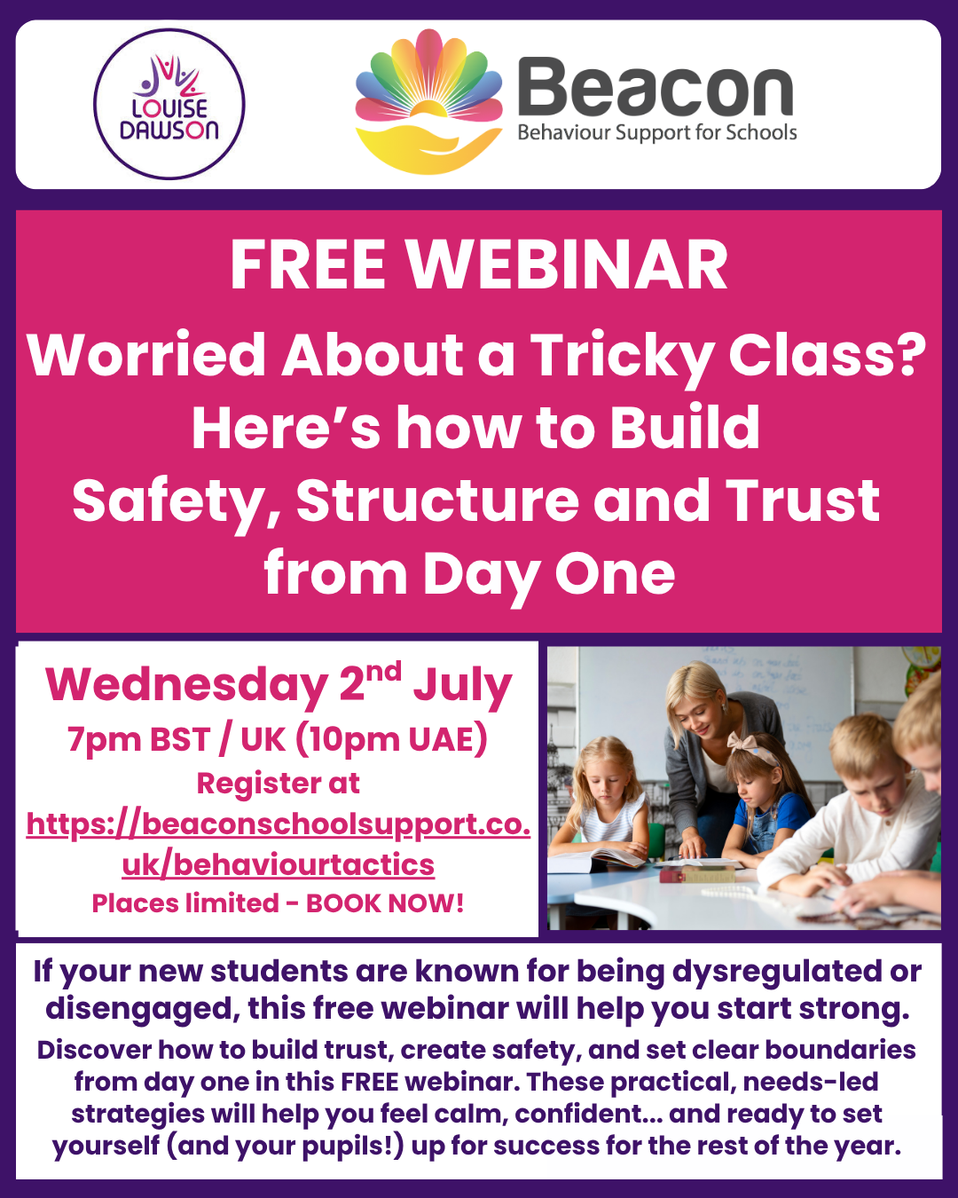 FREE Webinar! Beacon School Support: Behaviour Tactics – Tricky Class? How to Build Safety, Structure and Trust from Day One