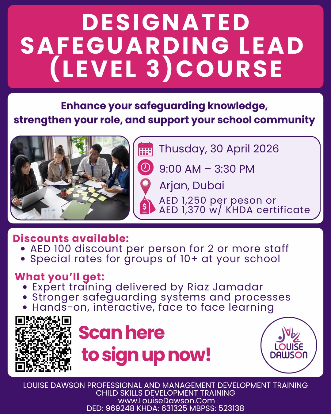 🟣 AED 100 discount per person for 2 or more staff