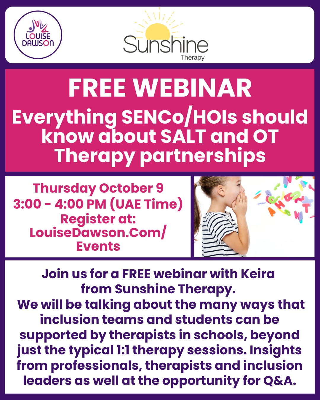 FREE Webinar! Everything SENCo/HOIs should know about SALT and OT Therapy partnerships, October ’25