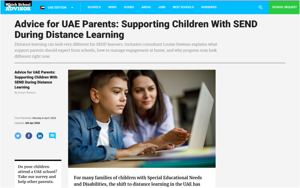 Louise speaks to Susan Roberts at WSA about distance learning. For many families of children with special educational needs and/or disabilities, the shift to distance learning in the UAE has changed the shape of the school day almost overnight. How can you help your child and family?